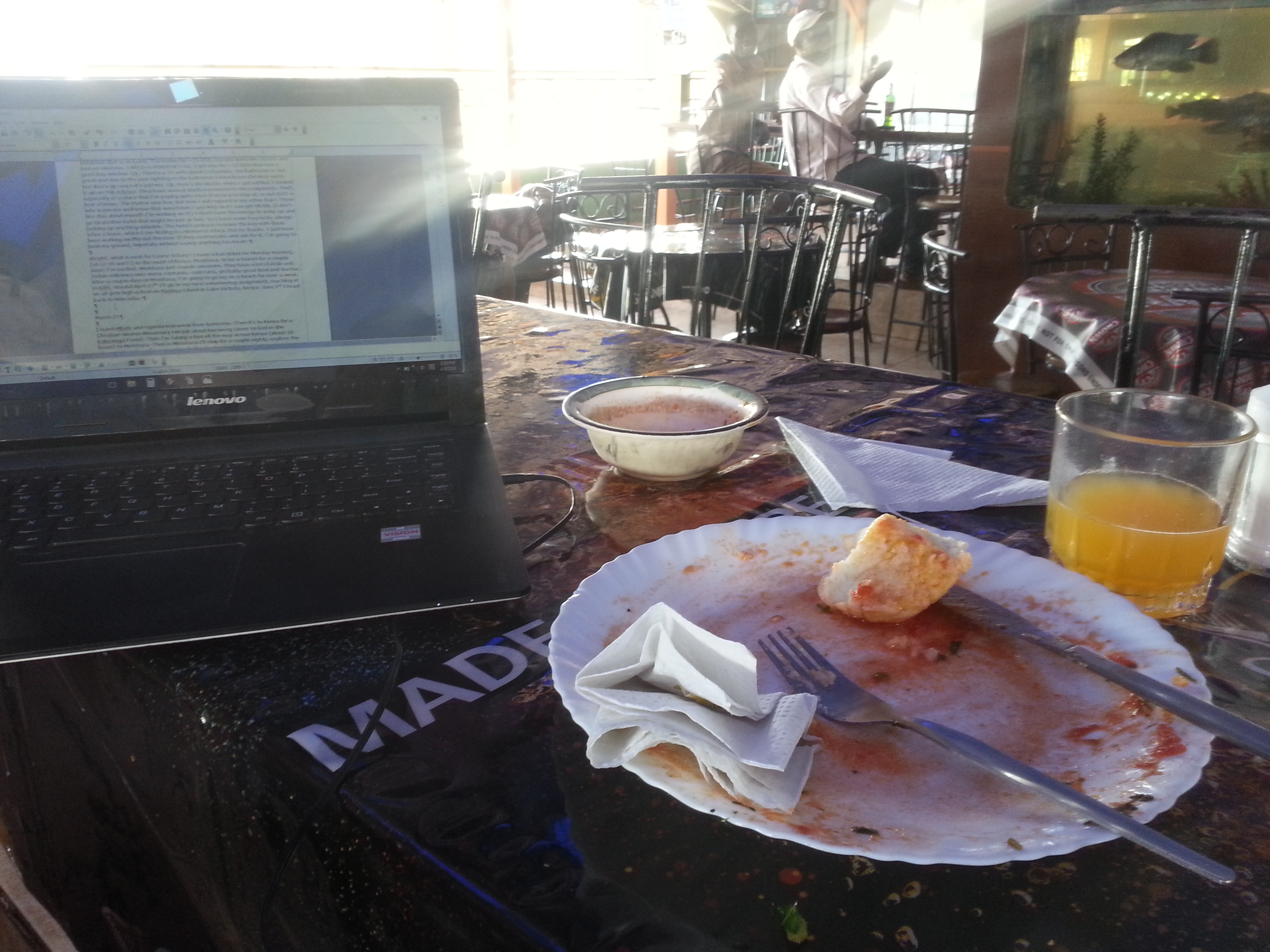 Right now I’m at a bar, eating lunch. It’s quite local and I think that the boda driver did a WONDERFUL job with taking me to this place. I’m in Kisimu and I’ve been here for a little under 24 hours. I am not fully satisfied with my hotel, Hotel Palmers. It seems to have a good location, it was given in my Lonely Planet book as a decent place and I could see it from where the matatu dropped me off, so that helped a lot. I did not fully investigate this place before I got here. It does have wonderful wifi though and a very nice big, buffet for breakfast that is included. The rooms for ~25 USD, literally were like closets and had no windows. I NEED A WINDOW!!! So, I get one for ~30 USD that has a giant bay window. Ok. There’s a TV with about 5 channels, the bathroom is not great and due to the poor lighting in the bathroom I have leave the door open, but that’s ok, since it’s just me. Ok, here’s the kicker, when I got settled, I looked it up on Trip Advisor. They have several thefts mentioned in the complaints. Theft, especially at a place that I’m paying quite a bit of money to stay at, is not JUST a fear of mine. The theft is one fear, but how I will respond is my other fear!! Those who know me well know that sometimes I get MAD and I can get MEAN, (I don’t like this about myself! I’m working on it!) I don’t have the energy to jump up and go to another hotel that might be just as bad. So I have some bag locks, always locking up anything valuable. The hotel’s policy is to leave the key with them when I leave, which I am finding is common in Africa. But no thanks, I just have been walking swiftly out the door. If they confront me and ask for it, I’m going to hold my ground, hopefully without saying anything too mean!