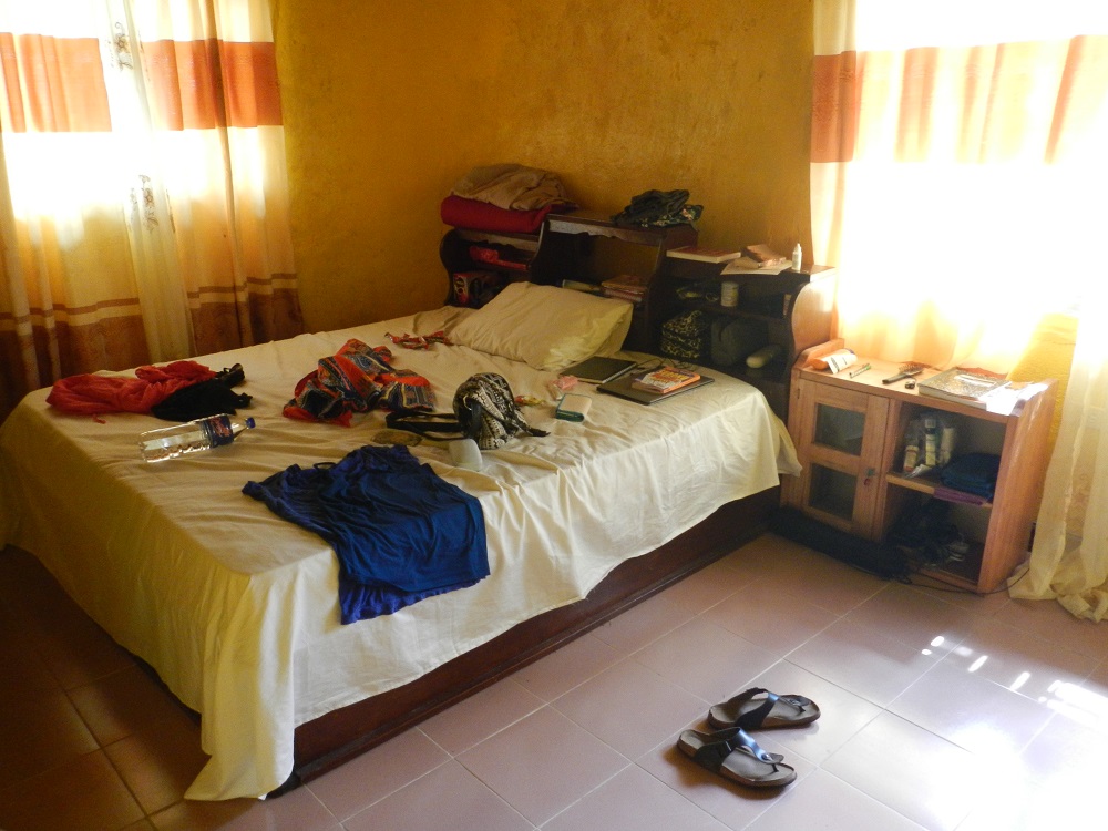 Right after I asked for a new room and was given a free room, it was time to chose. Kebbeh, the teenage, sweet niece who has been helping our team out a lot around the house (food, laundry, cleaning, everything), was taking me to the rooms and asking me which one I wanted. At this time, both rooms were locked and had to be unlocked with keys that she held in her hand. What I should have done is said, “Unlock both and let me check them both out to decide.” But, I had already liked the idea of Ron’s room and I asked Kebbeh “Which room is cooler?” and she said “Ron’s”. I was like “I’ll take it!” So we changed the sheets and eventually I moved all my stuff in.