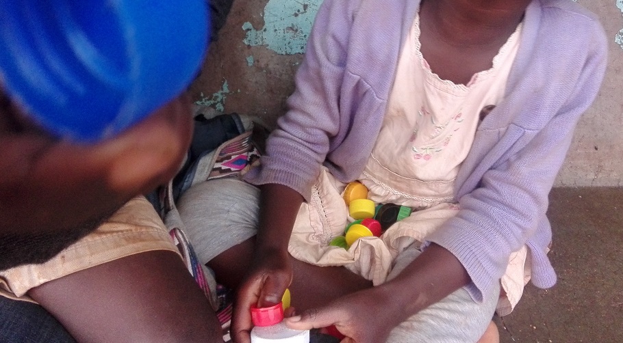 I try to mix it up a bit, like writing out the ABCs using a green crayon and keep asking them what color they’ve been using. And it’s been easy to mix the colors and counting with the lids.